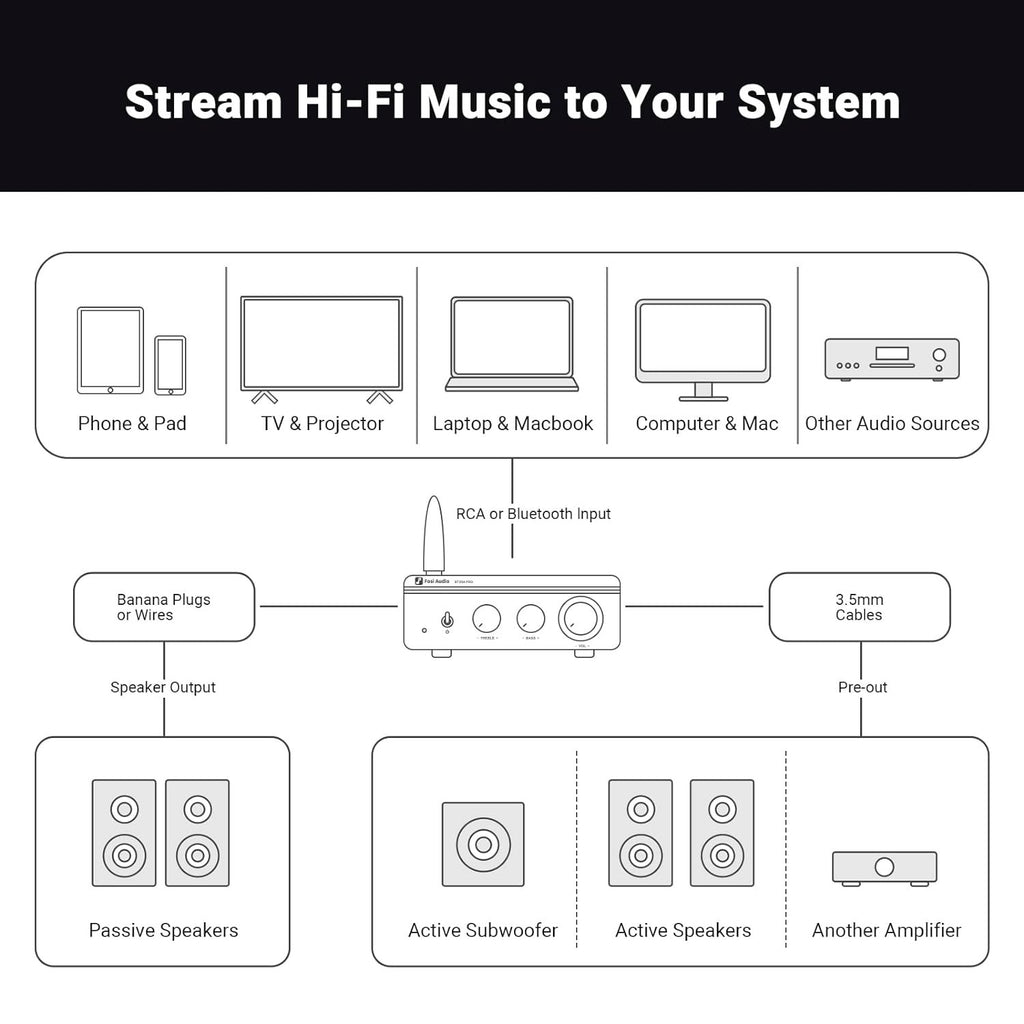 Denna 2-kanalsförstärkare BT20A PRO erbjuder både Bluetooth- och RCA-ingångar, tillsammans med passiva högtalarutgångar och en 3.5mm pre-amp port. Denna mångsidiga förstärkare ger dig kontroll över ditt 2.0-kanals ljudsystem och möjliggör anslutningar till din telefon, dator, surfplatta och mer.